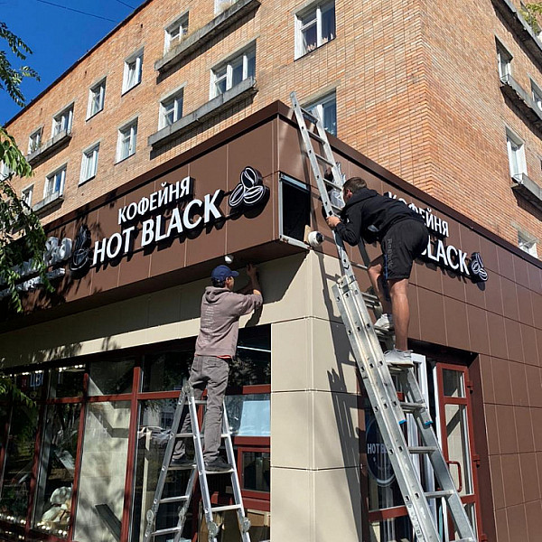 Зависит от нескольких факторов. Прежде всего, цена формируется на основе размера вывески и типа используемой подсветки. Для световых вывесок важным фактором также является место и высота монтажа. В среднем, стандартный срок выполнения заказа составляет 7-10 рабочих дней. Однако, если вам нужно срочно, за дополнительную плату наши специалисты могут выполнить заказ за 1-2 дня, работая в ночное время. Для оформления заказа вам понадобится макет, фото фасада и техническое задание. Если у вас нет макета, наши дизайнеры помогут его создать, а менеджеры помогут определиться с техническими деталями.